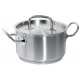 Tout en acier inoxydable 18/10, cette marmite avec couvercle est dotée d'un fond capsulé et d'un couvercle, conçu avec des trous d'échappement pour la vapeur. Finition extérieure poli satinée.